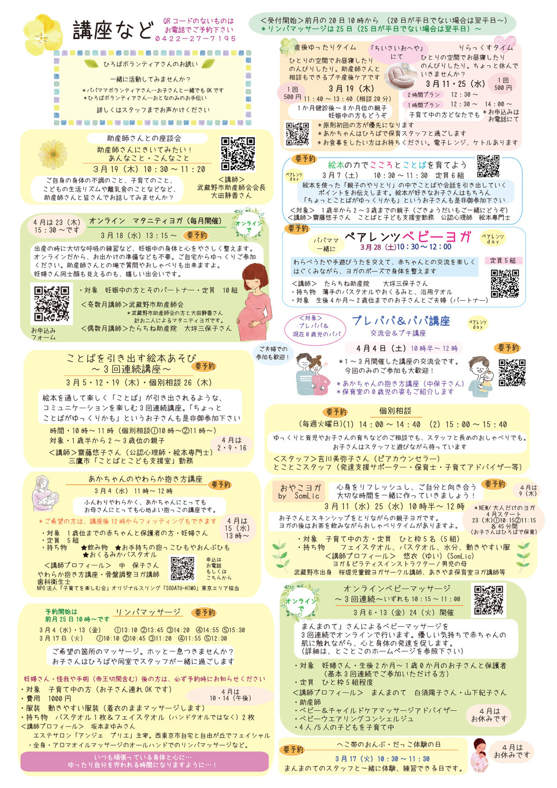 妊婦さんから、子育て中の方、子どもたち、誰でもどうぞ。